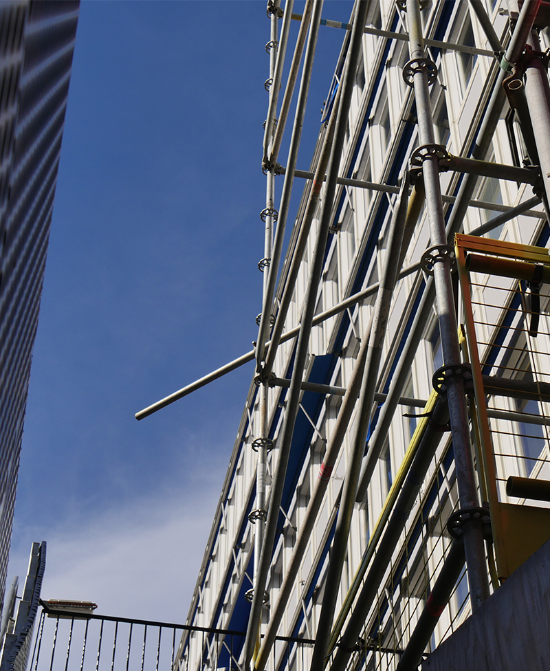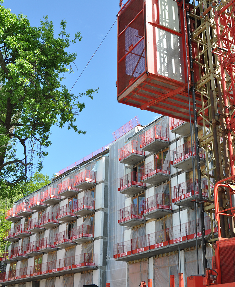 Vi hade en delad entreprenad där vi ansvarade för invändig och (delvis) utvändig stomkomplettering i sex plan.