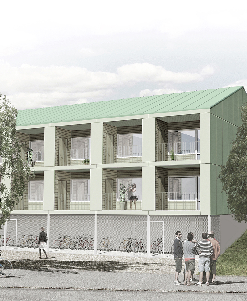 Byggande av två radhus med tre respektive fem lägenheter samt utvändiga förråd och miljöstation.