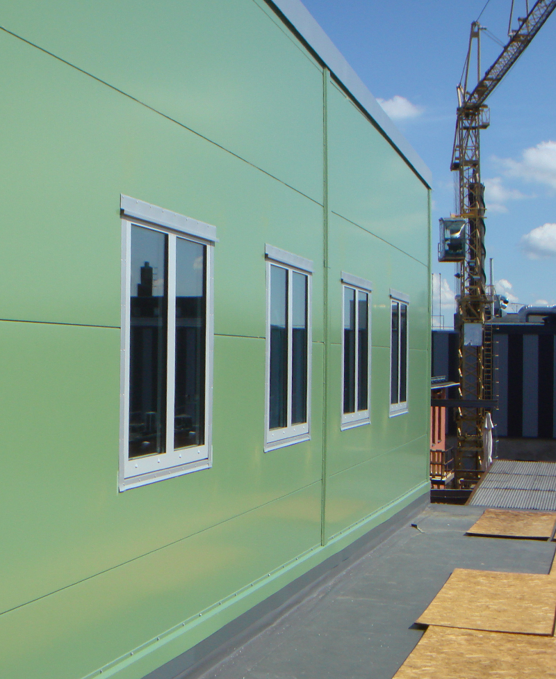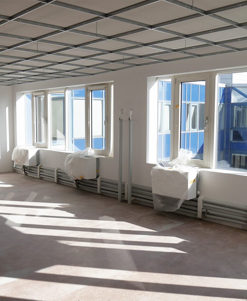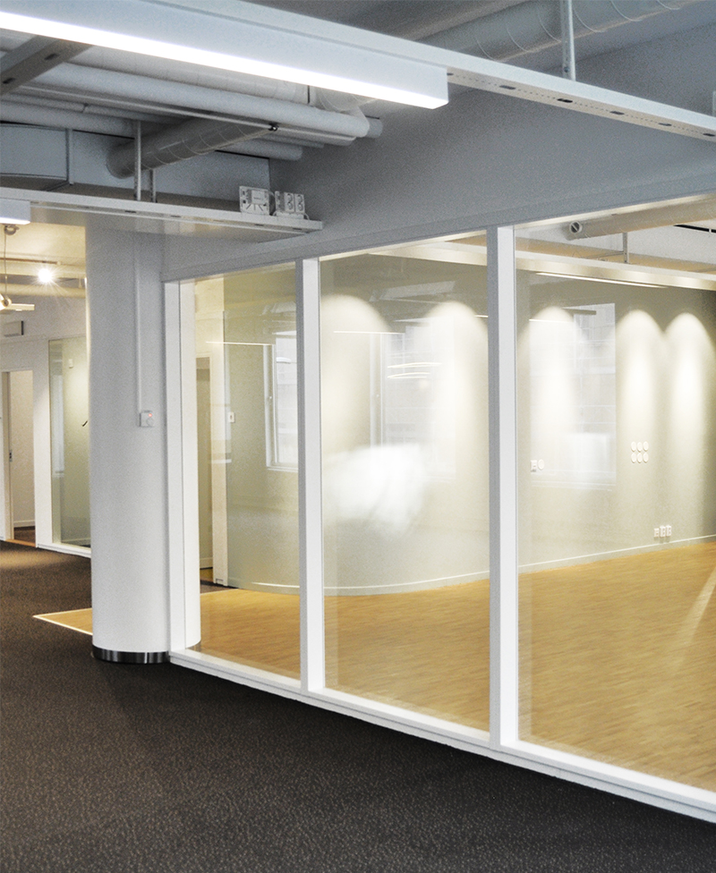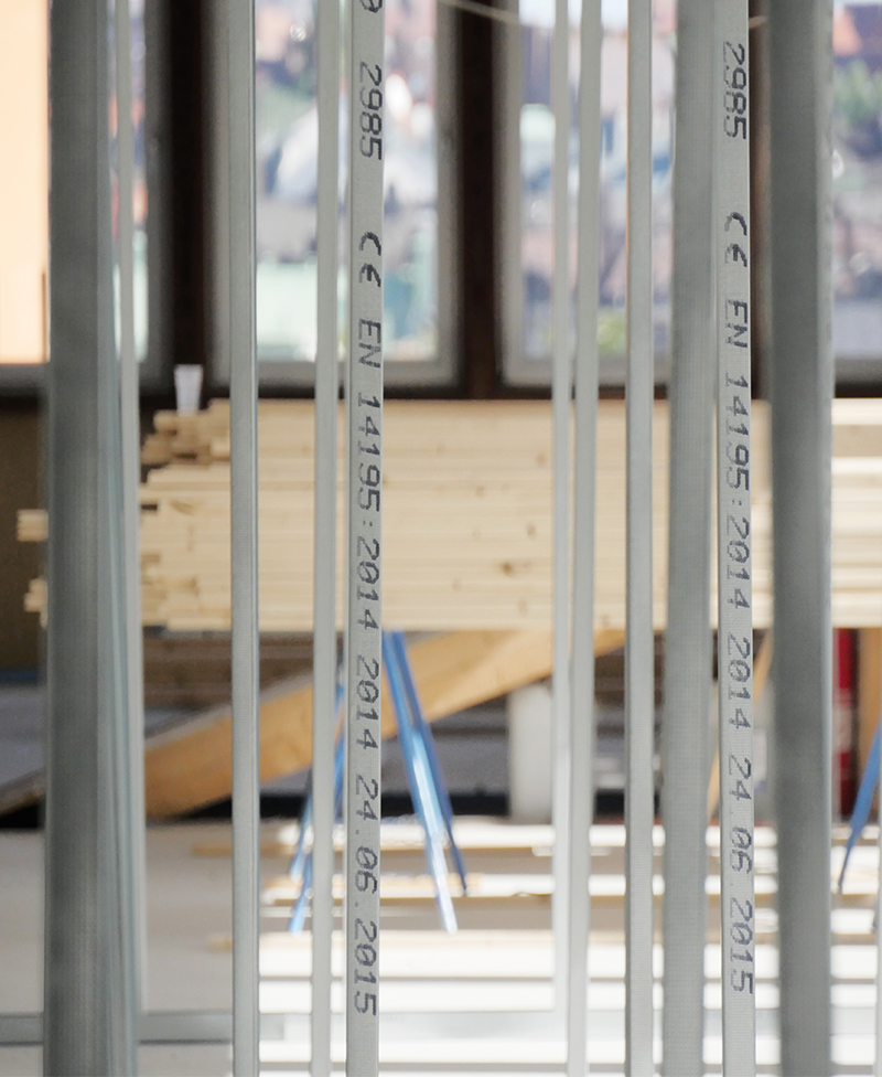 Vi utförde invändiga gipsväggar och håltagning för fasadöppningar i ruukki-väggar.